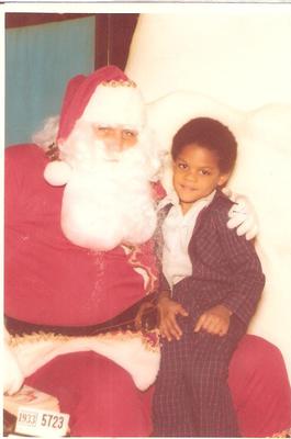 My brother's favorite holiday when we growing up was, like many children--Christmas. He used to love going to visit Santa. Here he is on the big man's